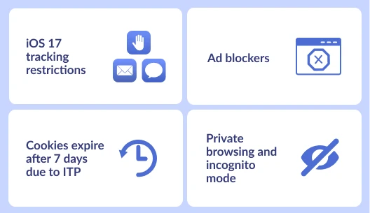 Intelligent Tracking Prevention, iOS 17, private browsing, ad blockers, and other restrictions result in cookies being expired or wiped out, breaking traditional attribution software. As privacy regulations become stricter, it’s essential to adapt your marketing analytics to the modern reality.